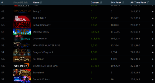 ▲ 스팀DB에 기록된 올타임 동시 접속자 순위
